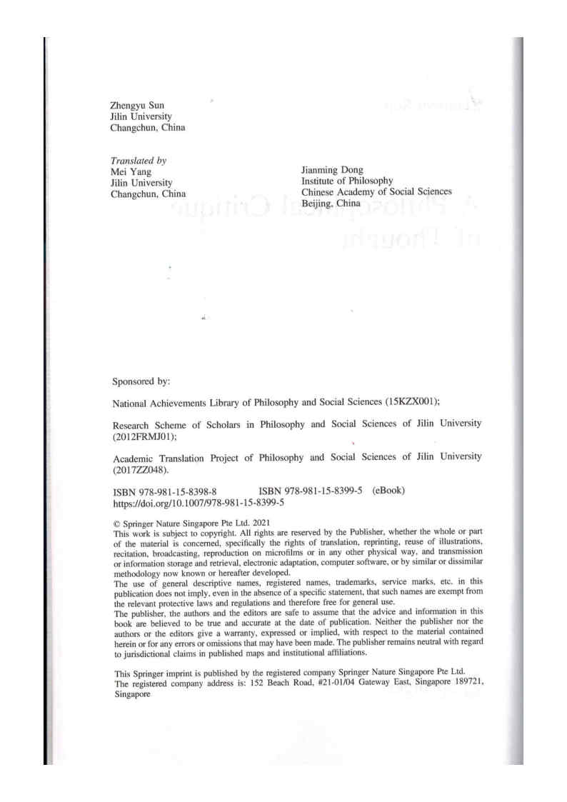 [NEW BOOK] Prof. Sun Zhengyu - A Philosophical Critique of Thought