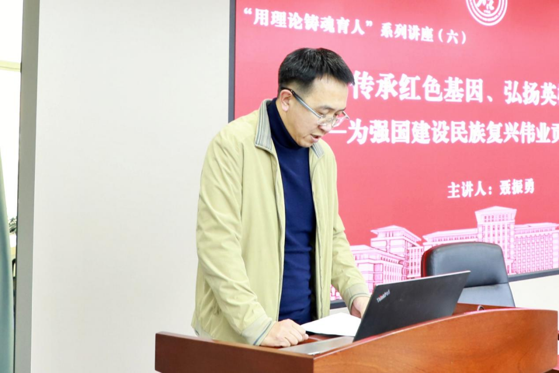10月23日,系列讲座第六讲在中心校区东荣大厦904会议室举办。本次活动邀请鞍钢集团党委宣传部(重庆时时彩部、统战部)部长、高级政工师聂振勇老师以“传承红色基因,弘扬英模精神——为强国建设民族复兴伟业贡献青春力量”为题向学院师生进行专题授课。学院领导班子、两委委员及各系师生党员共同参加本次讲座,讲座由学院党委副书记兼副院长朱大卫主持。