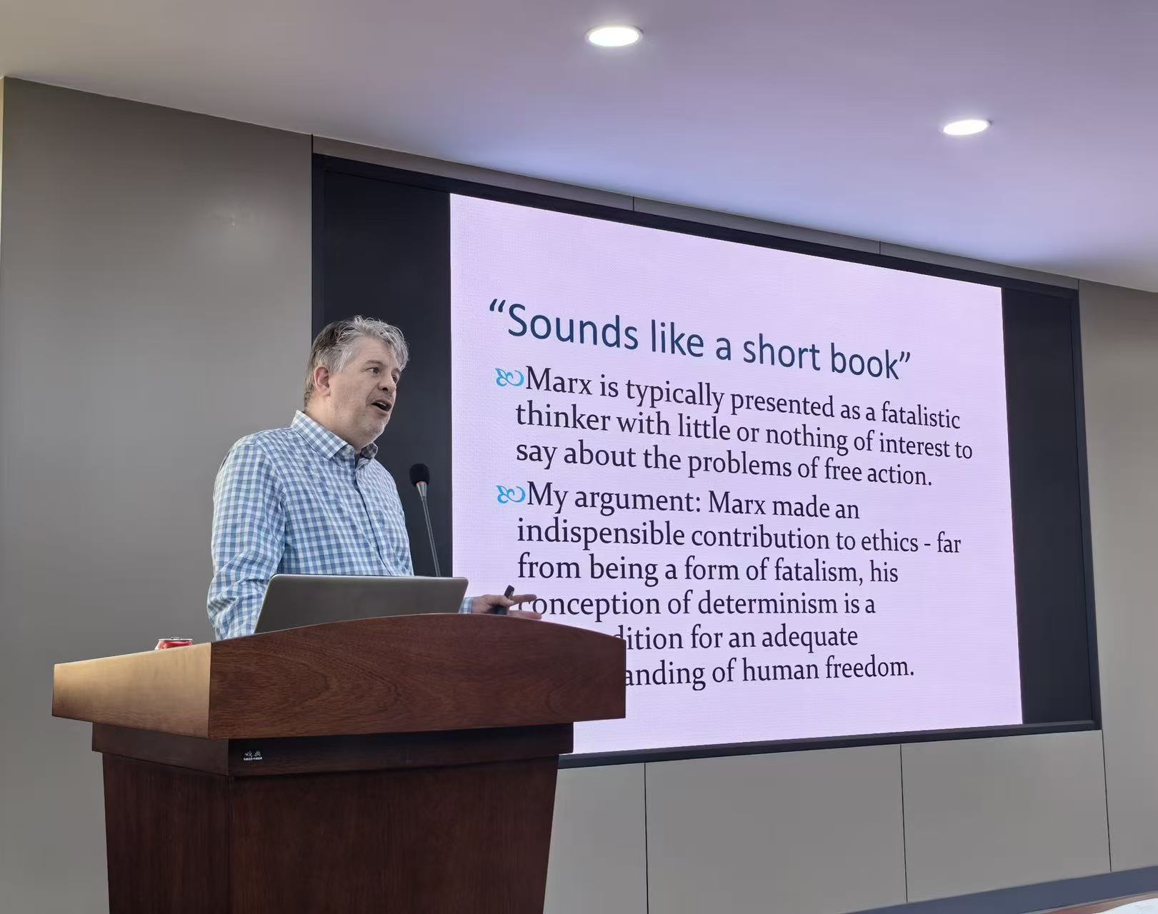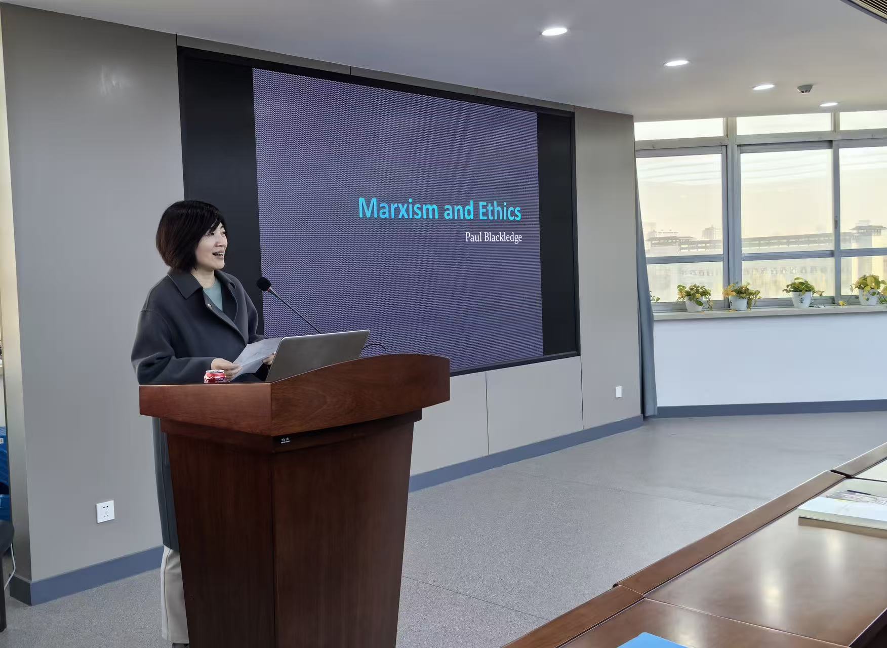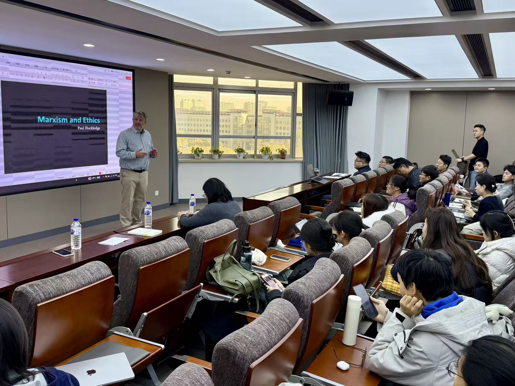 在“马克思主义与伦理学”的讲座中,布莱克里奇教授首先指出学界相关研究的局限性,指出全人类的自由和解放构成其伦理学观念的重要基础,而其中对决定论的重新理解则是阐发这一问题的前提。接着,讲座还以马克思主义的观点审视康德的义务论、边沁的功利主义等现代道德理论。最后,讲座分析了马克思论异化劳动的四个方面,并强调无产阶级关于团结和相互认可等美德的培育的作用。