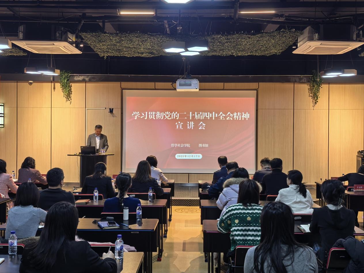 共同开展学习贯彻党的二十届四中全会精神宣讲会。宣讲会上,院长白刚教授以“聚焦‘十五五’:全面推进中国式现代化”为题做专题辅导。学院党委书记张晓萌及其他班子成员、党委委员、纪委委员、党支部书记、教师党员代表、学生党员代表出席本次活动。本次活动由图书馆党委书记宁德宽主持。