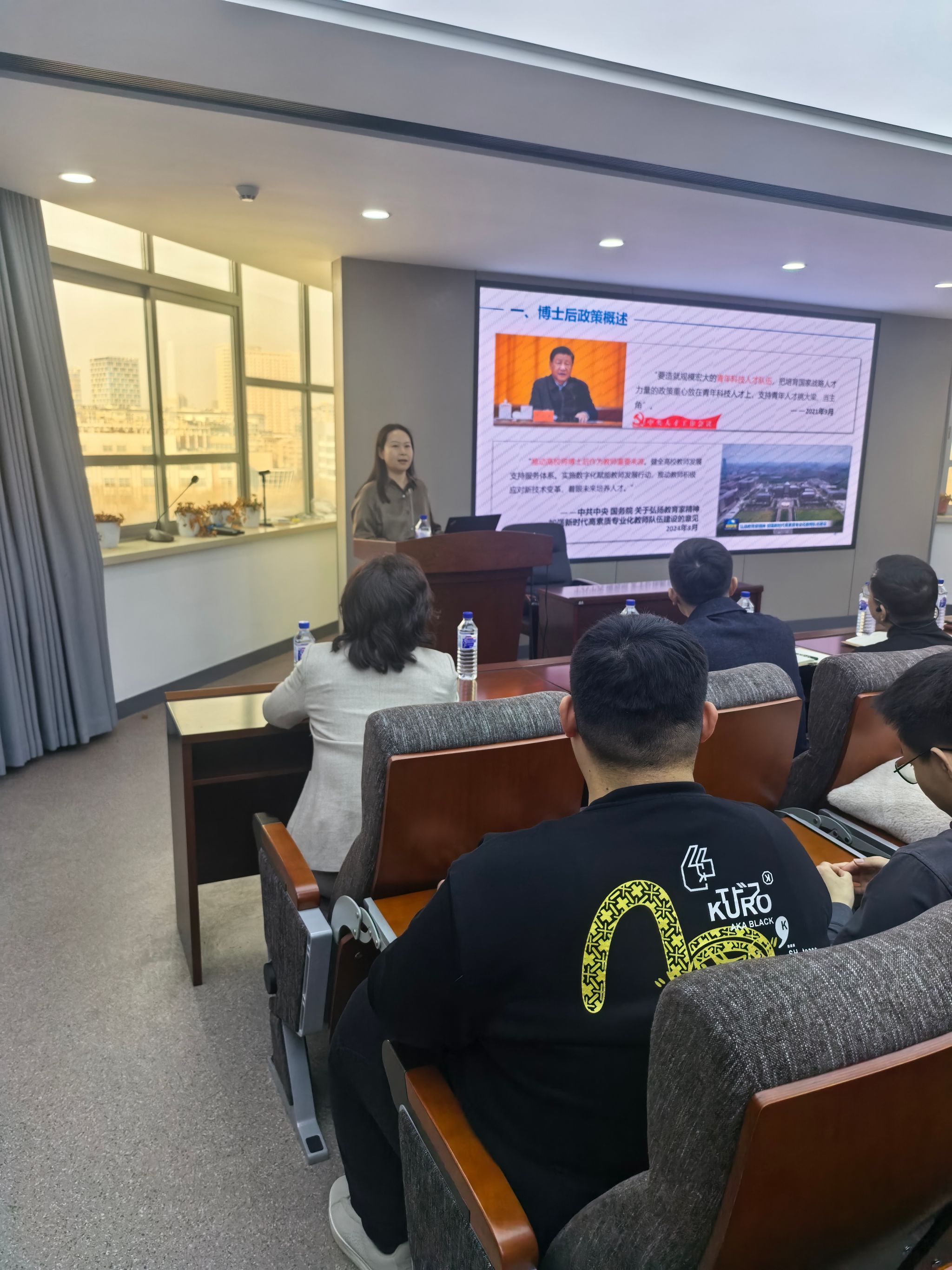 宣讲会首先由高娜副处长为大家梳理了当前的博士后政策框架。她指出,国家对于博士后研究的支持力度持续增强,政策体系日益完善,旨在为博士后研究人员提供更优质的科研环境和发展平台。随后,高副处长重点解读了“鼎新学者支持计划”。该计划通过提供启动经费、科研启动基金及生活补贴等多维度支持,帮助博士后研究人员快速开展创新性研究工作。