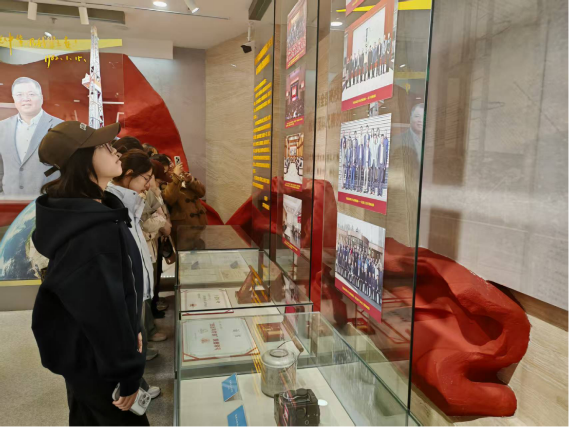 序启新程,薪火相传。走进校史馆序厅,“求实创新、励志图强”的校训熠熠生辉,同学们在讲解员的引导下,沿着学校的历史发展脉络,依次参观了“光辉岁月”“拓业先贤”“继往开来”“杏坛翘楚”“星光璀璨”等展区,通过一幅幅珍贵的历史照片和一件件厚重的实物展品,重温了学校砥砺奋进的办学历程。