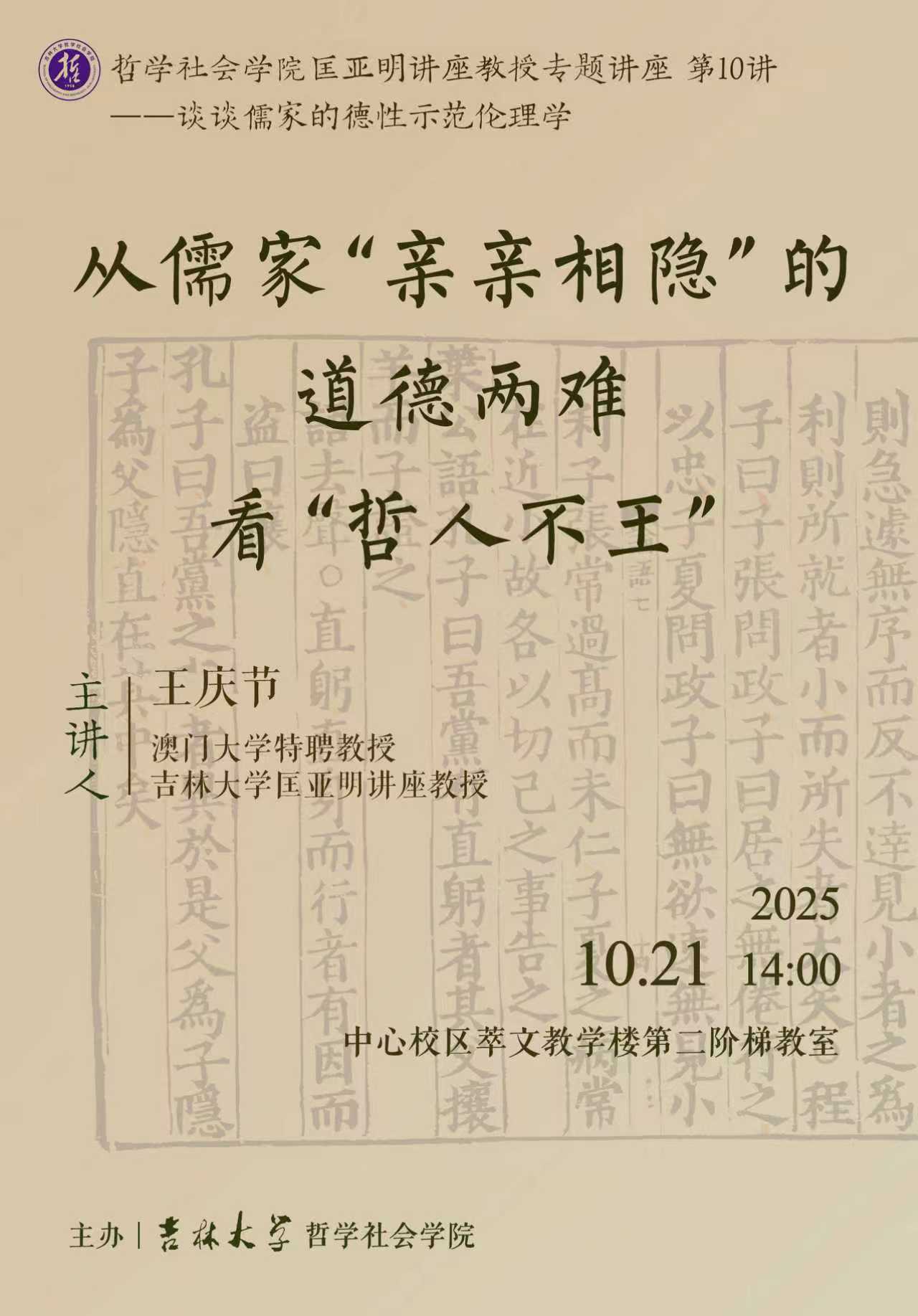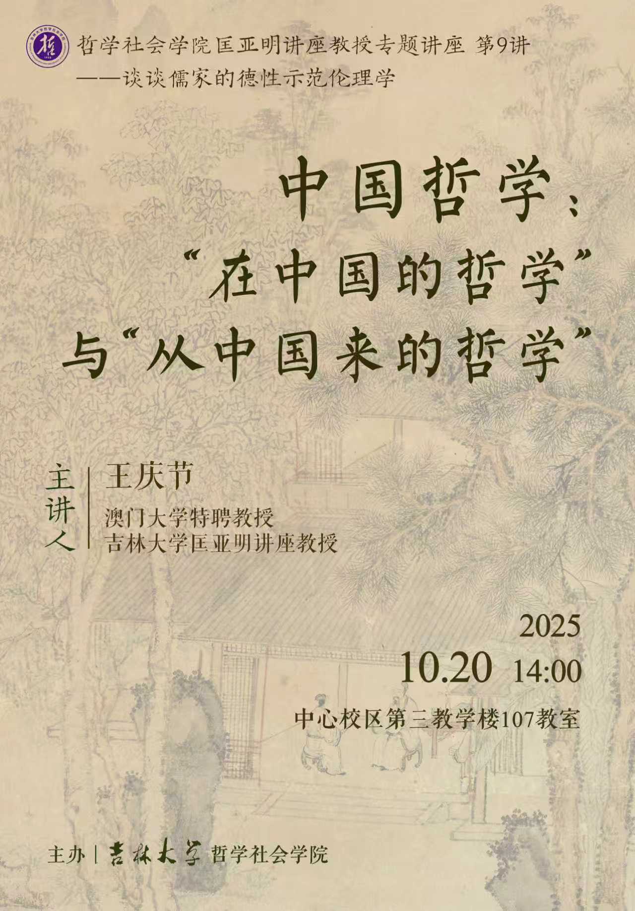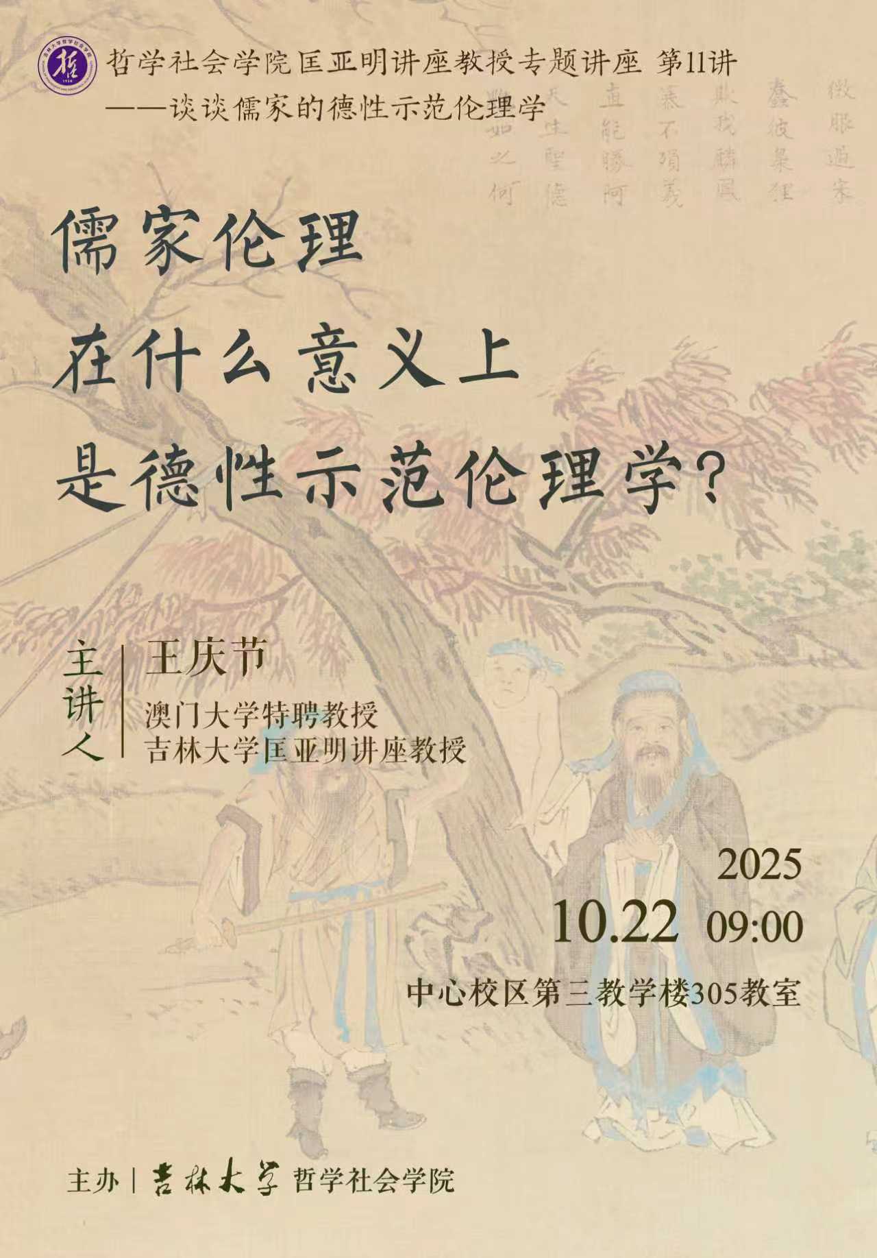 【重庆时时彩平台 匡亚明讲座教授专题讲座第9-11讲】王庆节: 谈谈儒家的德性示范伦理学