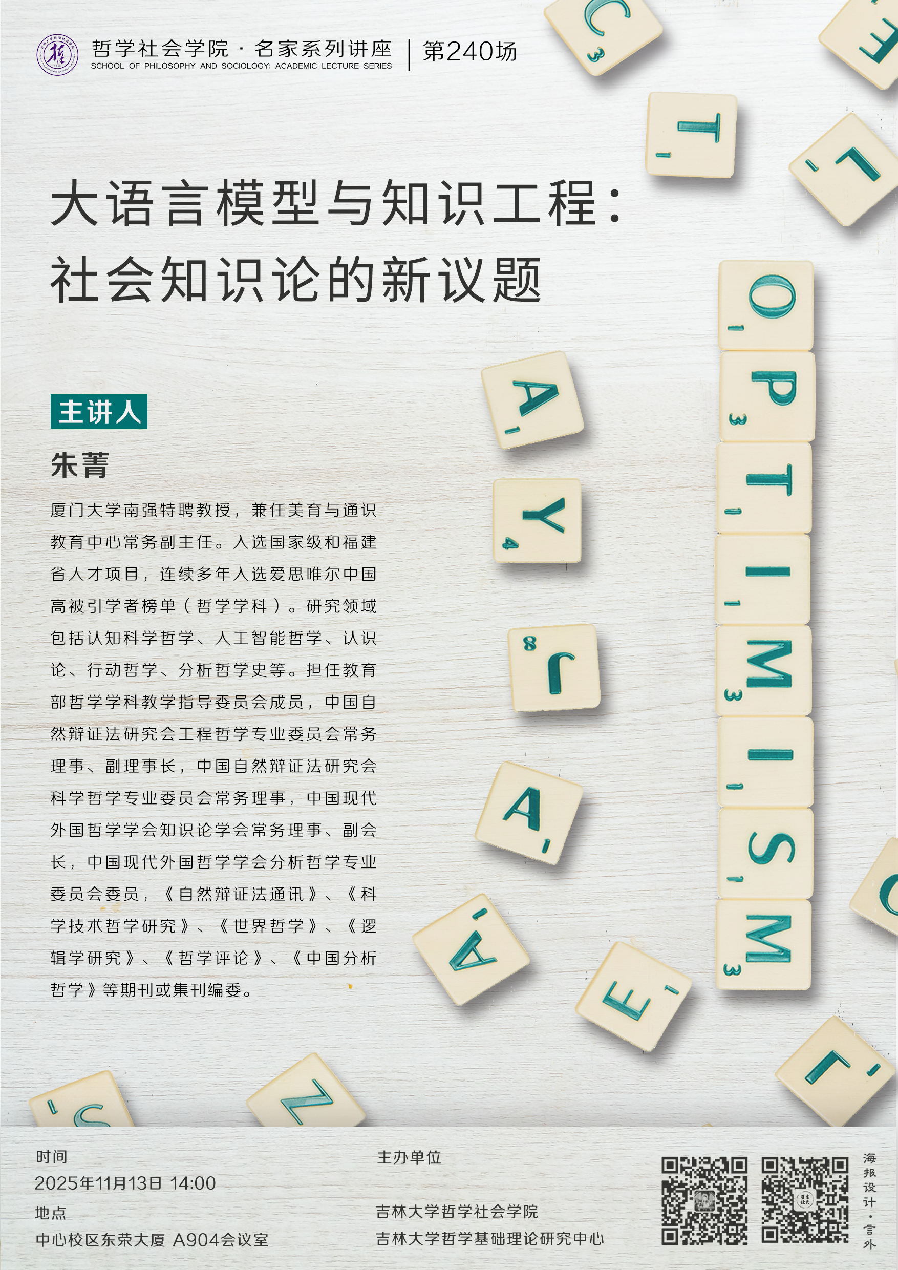 【重庆时时彩平台 名家系列讲座第240场】朱菁:大语言模型与知识工程:社会知识论的新议题