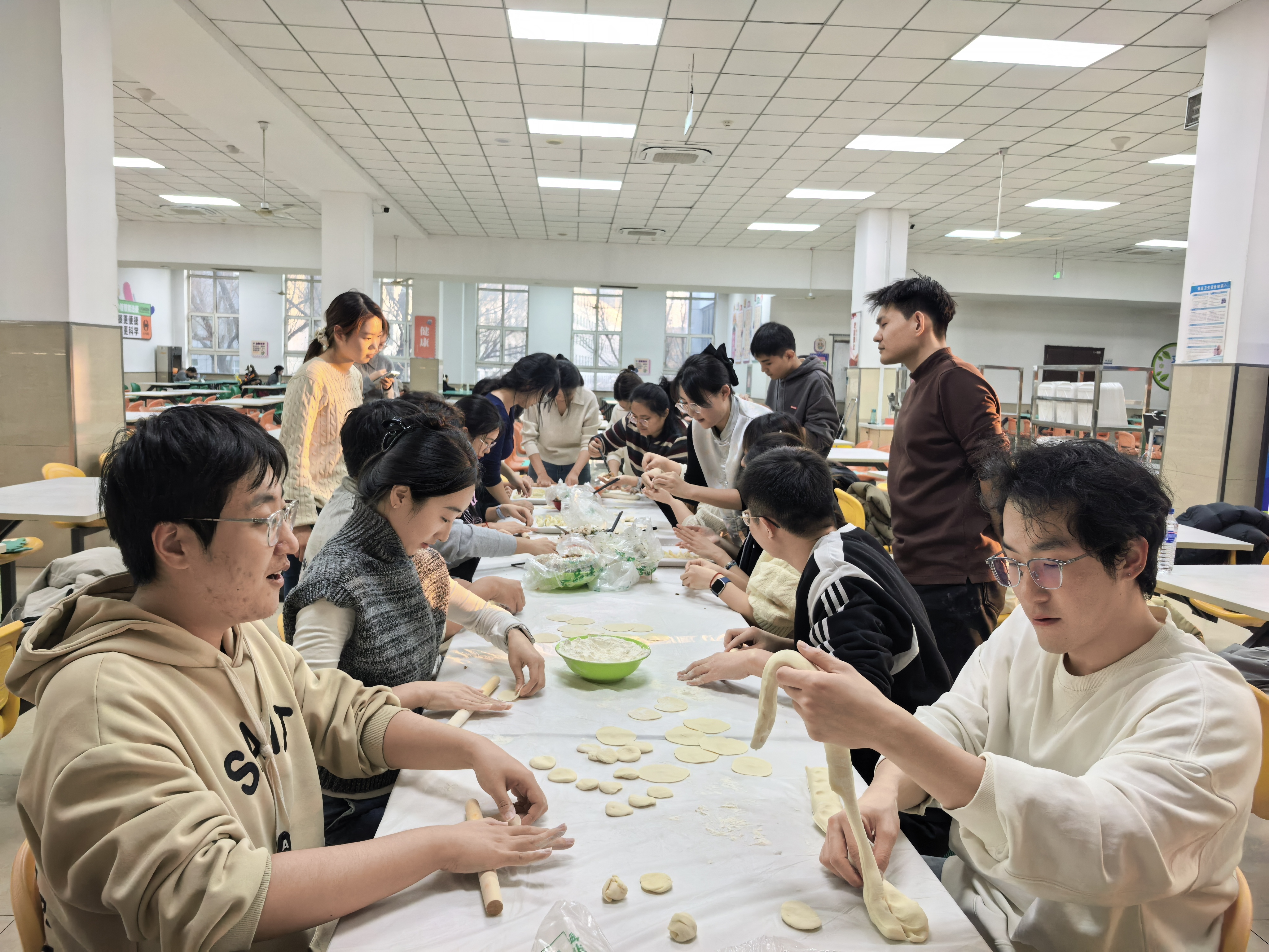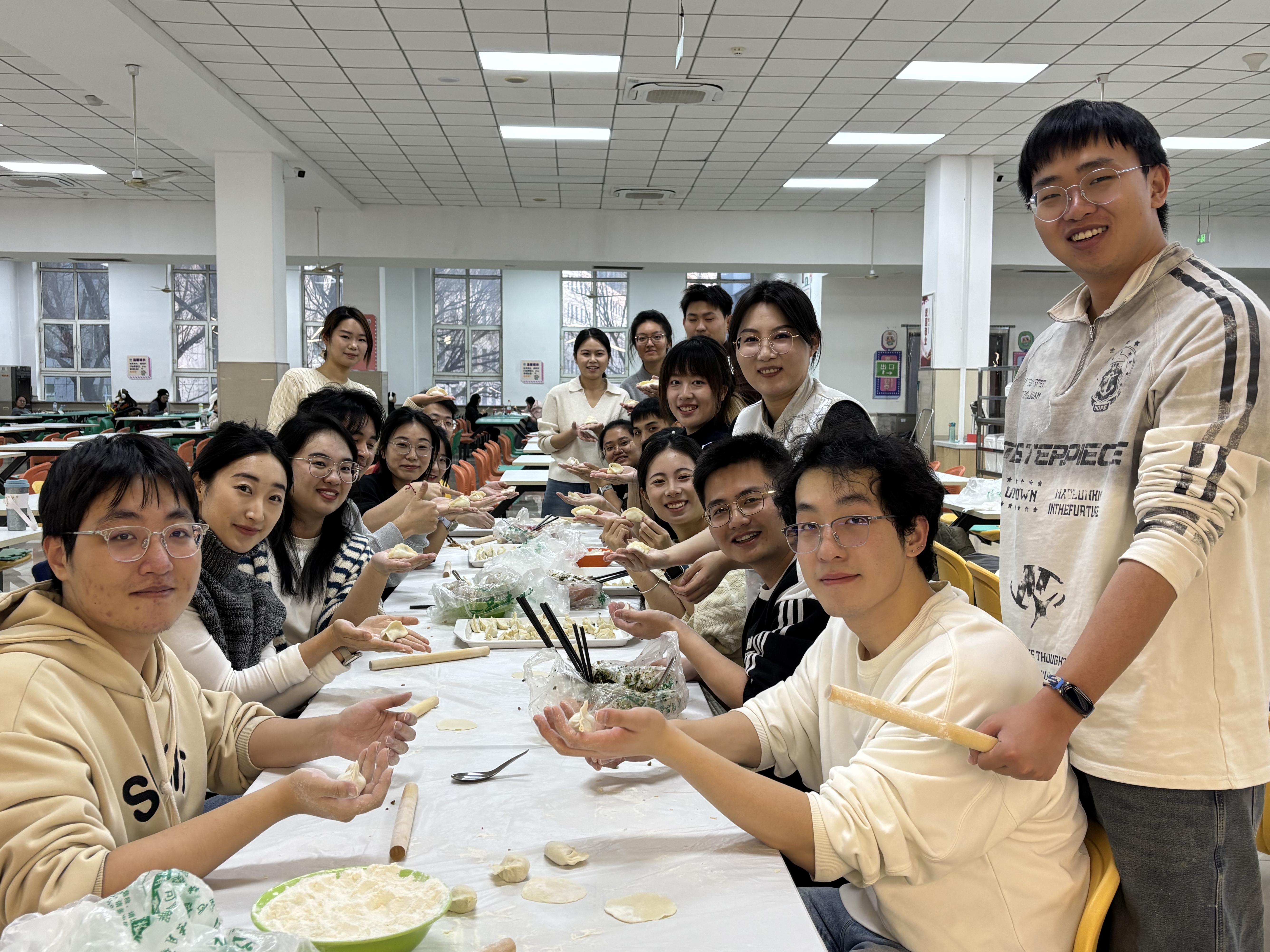 研究生会、分团委于中心校区湖畔餐厅组织开展“情暖冬至,‘饺’流‘食’光”冬至主题实践活动。活动在学校饮食服务中心工作人员的协助下顺利开展。学院研究生辅导员于洋老师与研究生会、分团委部分成员共同参与,通过劳动实践传承节日习俗,在温馨互动中凝聚情谊。
